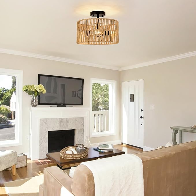 - 360° Light Effect: The coastal rattan ceiling lamp casts 360° light effect shadow through the holes and provides a cozy soft glow when turn on. Elegant and beautiful accent lighting for living room, bedroom, kids room, kitchen, farmhouse, nursery