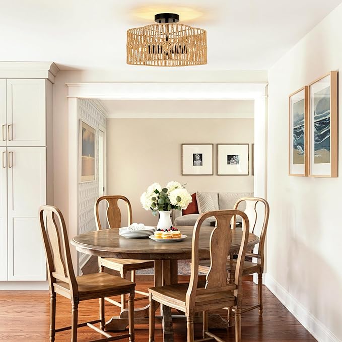 - Ideal for a Variety of Styles: The versatility of the rattan ceiling lamp makes it ideal for any home decor, from coastal to bohemian and rustic. Can be used as a bedside shade, in entrance hall, nursery, over a kitchen island, dining table and patio