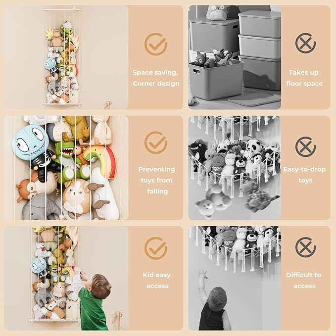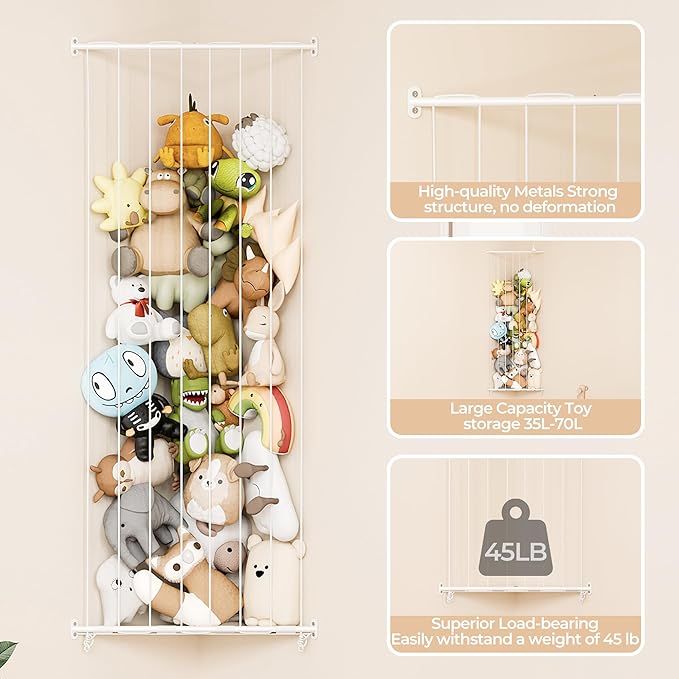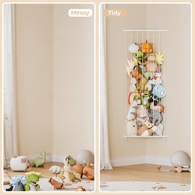 - Easy to Assemble: No additional tools are required. Our stuffed animal organizer is easy to install, making it the best choice for storing teddy bears, baby stuffed animals, plush toys, and more.