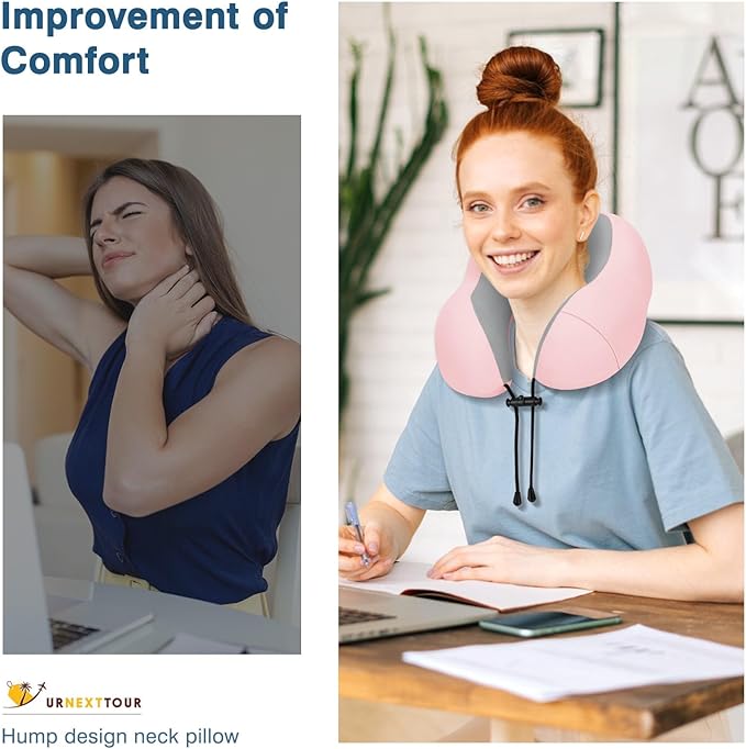 - Perfect Support with Ergonomic Design: urnexttour airplane neck pillow has unique curves and shape design that can naturally fit your neck and back; it offers 360°support helps you keep your neck and head upright to alleviate pressure and without getting any soreness during travel. The durable rope lock could be used to adjust the angle and the size of the pillow to meet different neck size requirements. It will be your best sleep partner for travel.