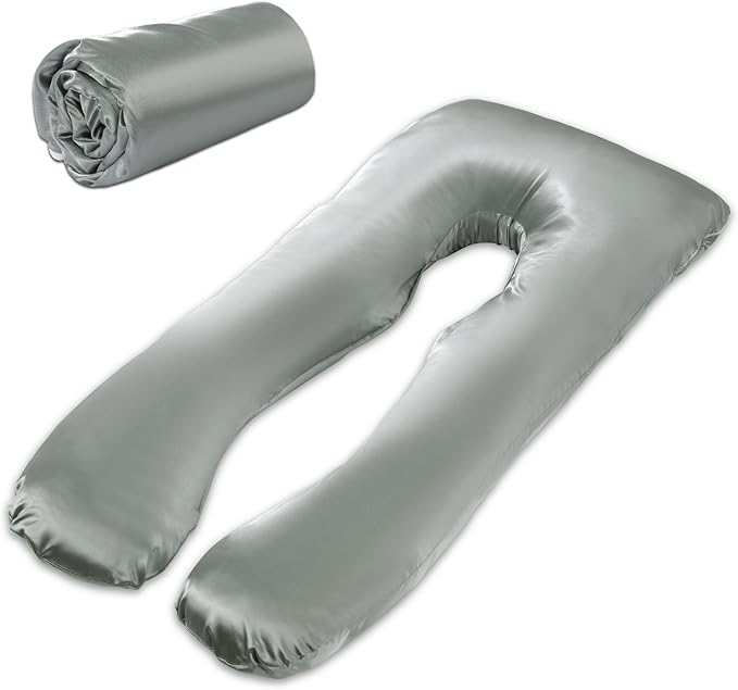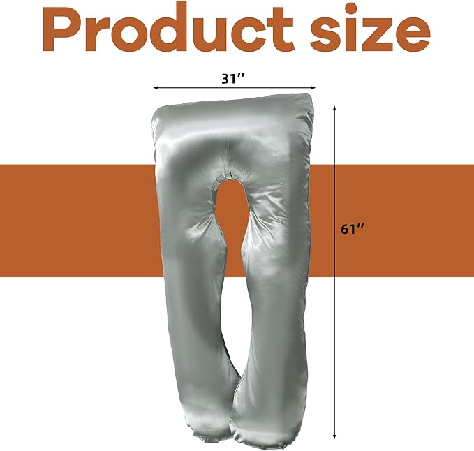 HOMBYS Silky Satin Pregnancy Pillow Cover (ONLY Pillowcase), Luxurious Smooth Maternity Pillow Cover, U Shaped Soft & Breathable Large Pillow Protector for Side Sleeper, 60.8" L x 31.5" W, Dark Grey