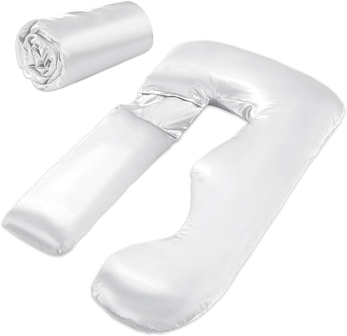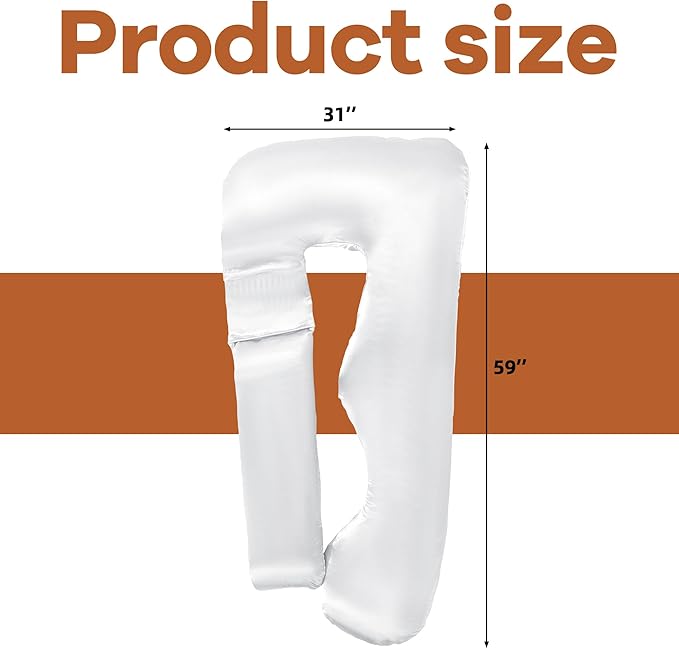 HOMBYS Silky Satin Pregnancy Pillow Cover (ONLY Pillowcase), Luxurious Smooth Maternity Pillow Cover, U Shaped Soft & Breathable Large Pillow Protector for Side Sleeper, 58.6" L x 30.9" W, White