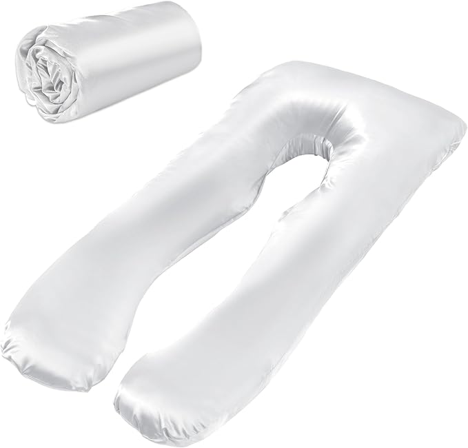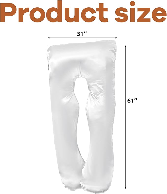 HOMBYS Silky Satin Pregnancy Pillow Cover (ONLY Pillowcase), Luxurious Smooth Maternity Pillow Cover, U Shaped Soft & Breathable Large Pillow Protector for Side Sleeper, 60.8" L x 31.5" W, White