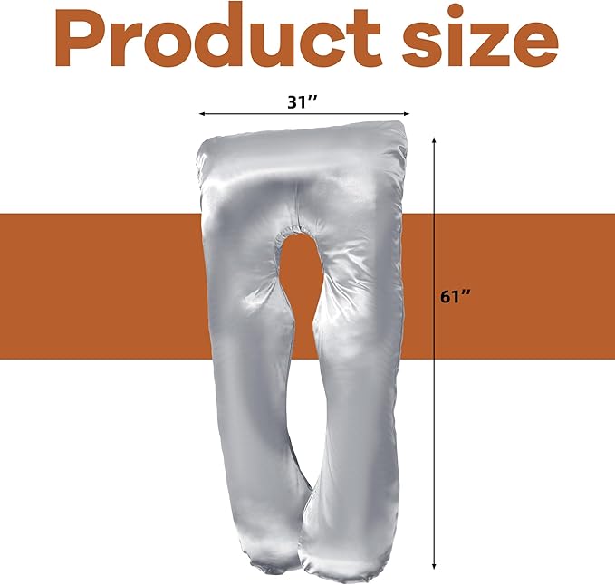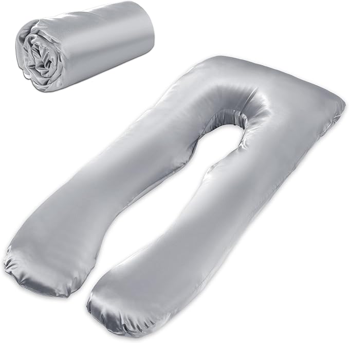 HOMBYS Silky Satin Pregnancy Pillow Cover (ONLY Pillowcase), Luxurious Smooth Maternity Pillow Cover, U Shaped Soft & Breathable Large Pillow Protector for Side Sleeper, 60.8" L x 31.5" W, Light Grey