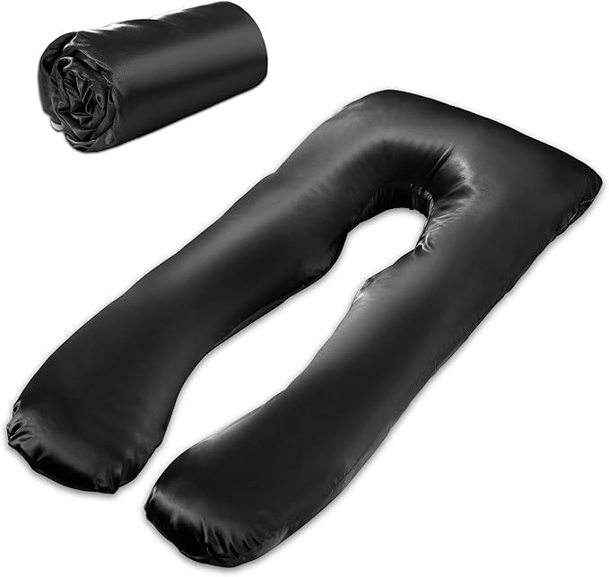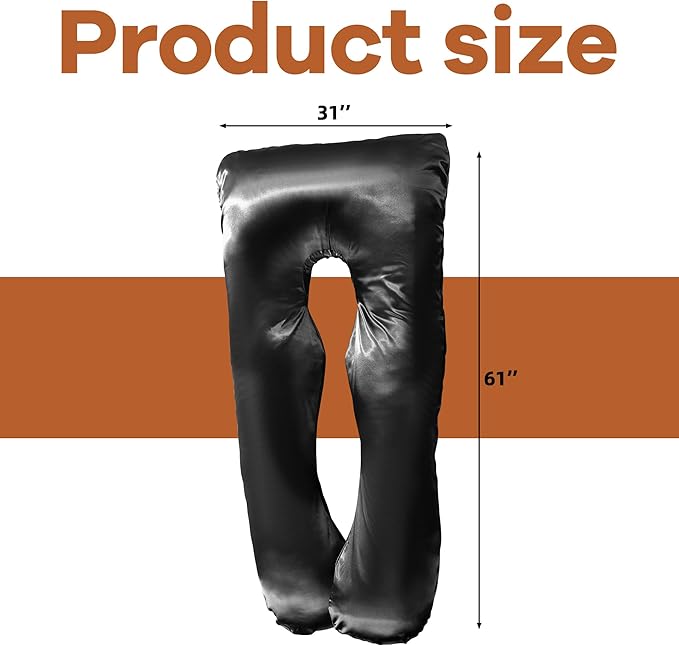 HOMBYS Silky Satin Pregnancy Pillow Cover (ONLY Pillowcase), Luxurious Smooth Maternity Pillow Cover, U Shaped Soft & Breathable Large Pillow Protector for Side Sleeper, 60.8" L x 31.5" W, Black