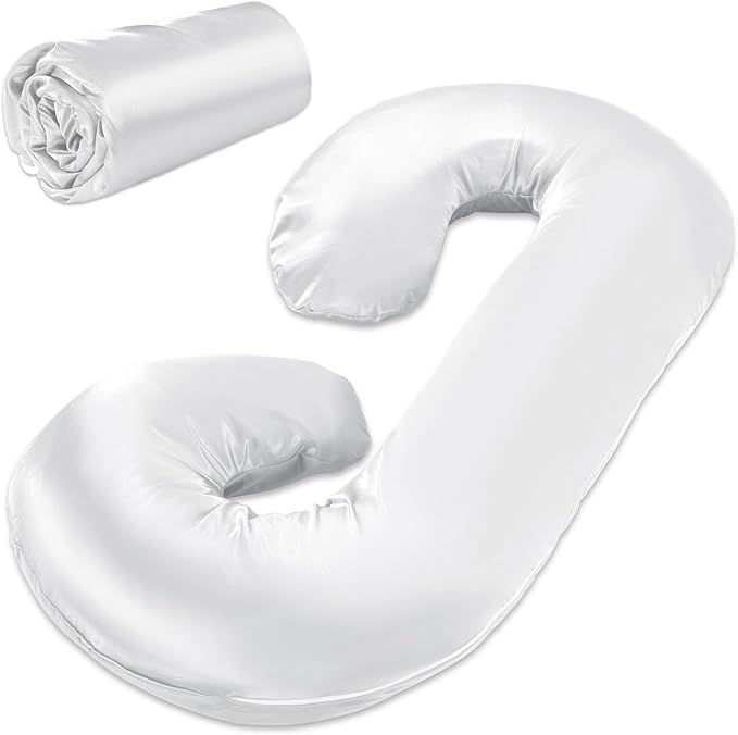 HOMBYS Silky Satin Pregnancy Pillow Cover (ONLY Pillowcase), Luxurious Smooth Maternity Pillow Cover, C Shaped Soft & Breathable Large Pillow Protector for Side Sleeper, 60.2" L x 34.2" W, White