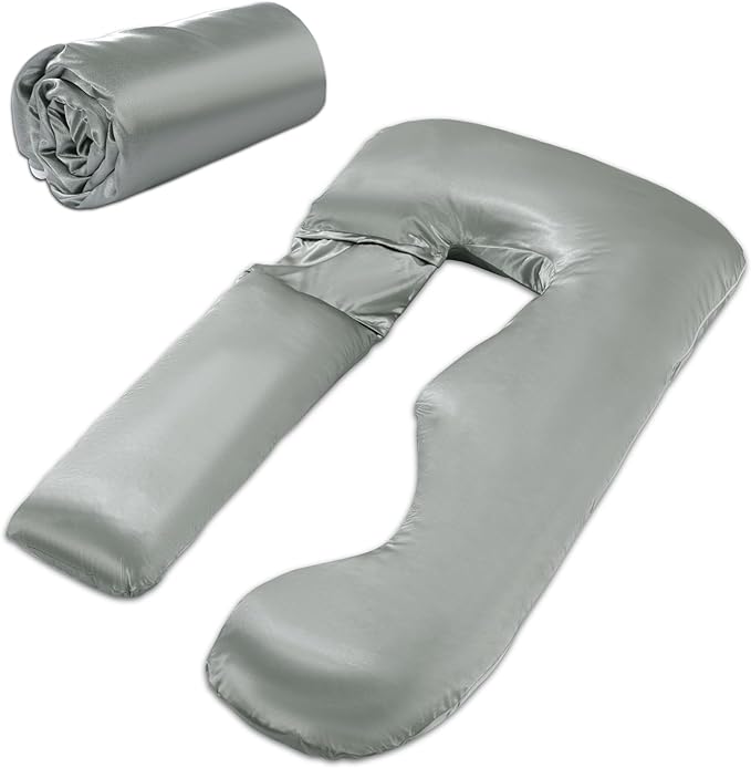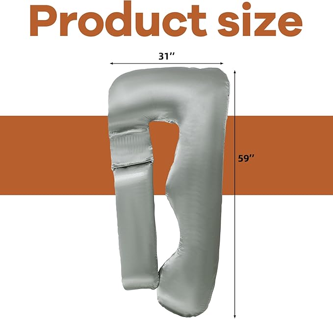 HOMBYS Silky Satin Pregnancy Pillow Cover (ONLY Pillowcase), Luxurious Smooth Maternity Pillow Cover, U Shaped Soft & Breathable Large Pillow Protector for Side Sleeper, 58.6" L x 30.9" W, Dark Grey