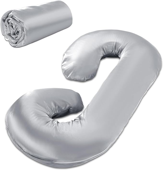 HOMBYS Silky Satin Pregnancy Pillow Cover (ONLY Pillowcase), Luxurious Smooth Maternity Pillow Cover, C Shaped Soft & Breathable Large Pillow Protector for Side Sleeper, 60.2" L x 34.2" W, Light Grey
