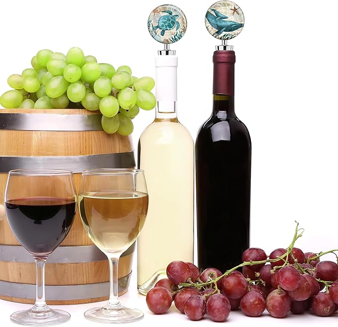 LIZIMANDU Wine Bottle Stoppers,Stainless Steel Wine Stoppers For Gifts, Bar, Holiday Party, Wedding(2-Turtles Whales)