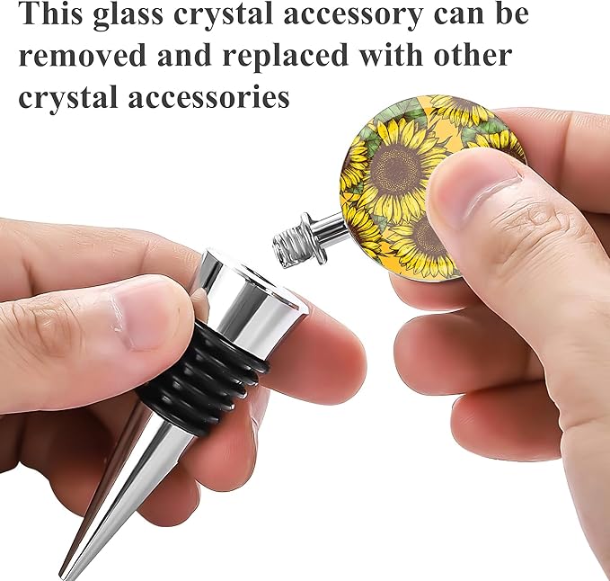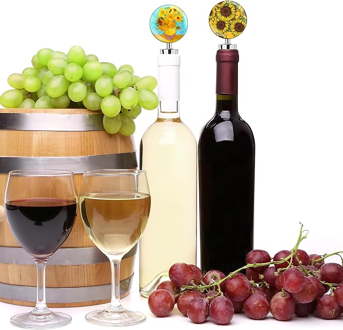 LIZIMANDU Wine Bottle Stoppers,Stainless Steel Wine Stoppers For Gifts, Bar, Holiday Party, Wedding(2-Sunflower)