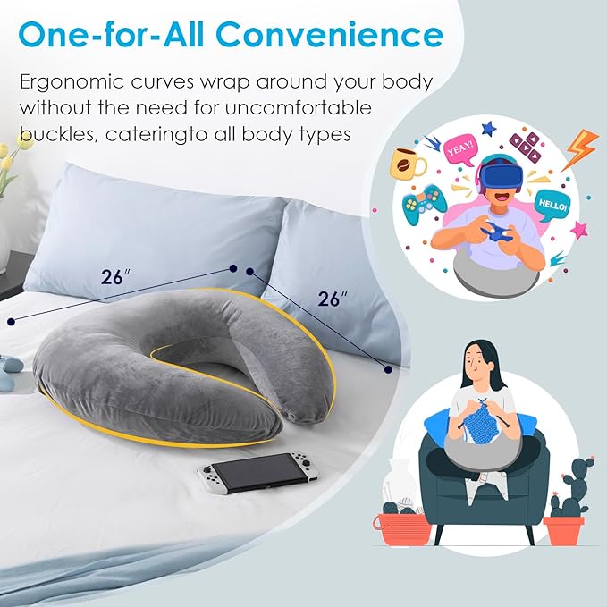 - Extended U-Shaped for More Comfort: The extended U-shaped tail folds to support your elbows or can be placed behind your back as a supportive backrest. Ergonomic curves wrap around your body without uncomfortable straps, offering a smooth, luxurious feel for all body types