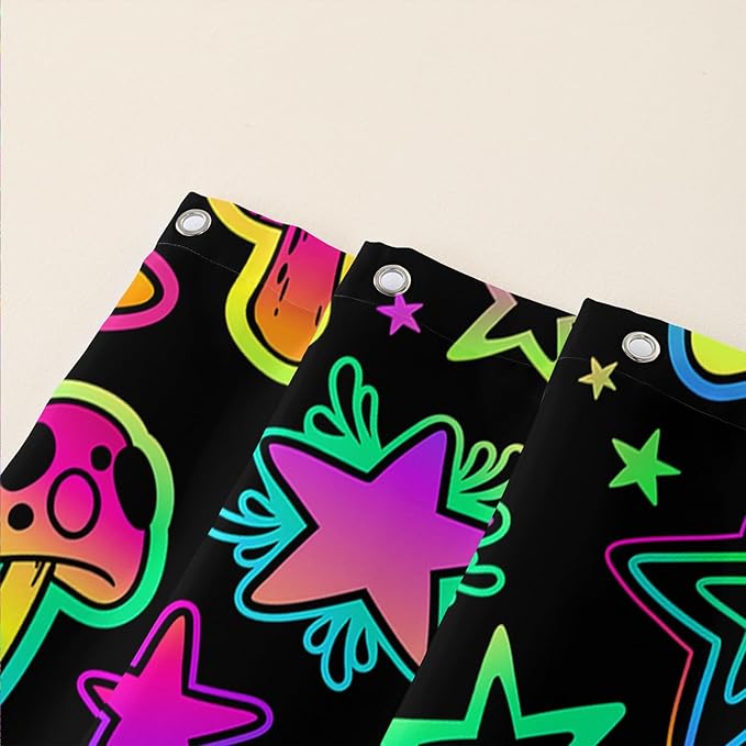 AILONEN Cute Mushroom Window Curtain for Kids,Star Purple Mushroom Curtain for Bathroom Decor,Gradient Mushroom Polyester Waterproof with 12 Plastic Hooks 72" W*72" H