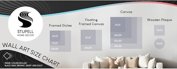 - Framed Giclee Product Sizes Include 12"x12", 17"x17", and 24"x24". Framed Giclee Products have a 1.5" Depth.