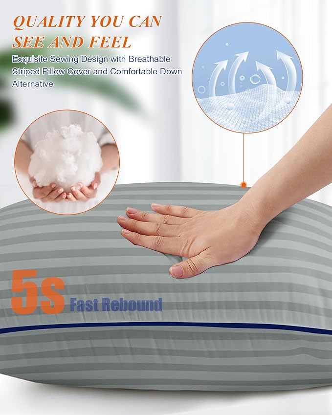 Bed Pillows for Sleeping King Size, Set of 2- Cooling, Luxury Hotel Quality with Premium Soft Down Alternative Filling for Back, Stomach or Side Sleepers, Light Grey