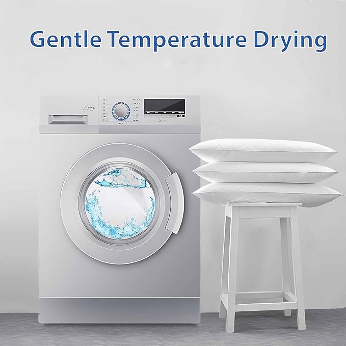 - WHAT YOU GET - 2 pack of king size comfy bed pillows. Gentle washing with cold water. High temperature drying.
