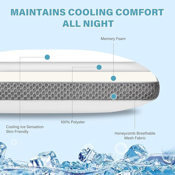 - 🧊【Breathable Cooling Pillowcase】The sleeping pillow features a high-quality double-layer pillowcase that is soft and fits snugly with the pillow core, with 3 times the breathability of other contour pillow. It is removable with a zipper, machine-washable. The pillowcase is made of COLD SILK TECHNOLOGY FABRIC, perfectly fitting the skin, with soft and cooling fabric that keep you cool all night long-allowing the skin to breathe and have a dry night! Give you the comfortable sleep you want!