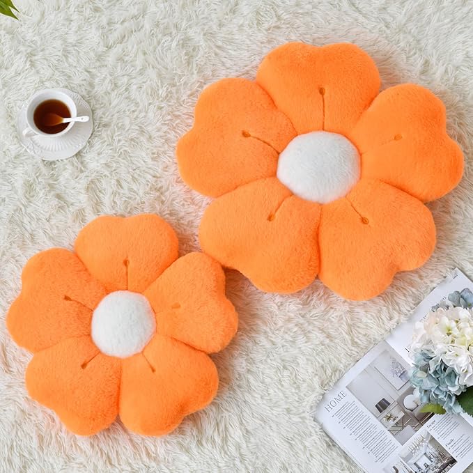 Flower Pillow, Flower Shaped Pillow Decorative Throw Pillows for Bed Couch, Cute Daisy Pillow Dorm Decor Floor Seating Cushion (Orange, 19.6 Inches)