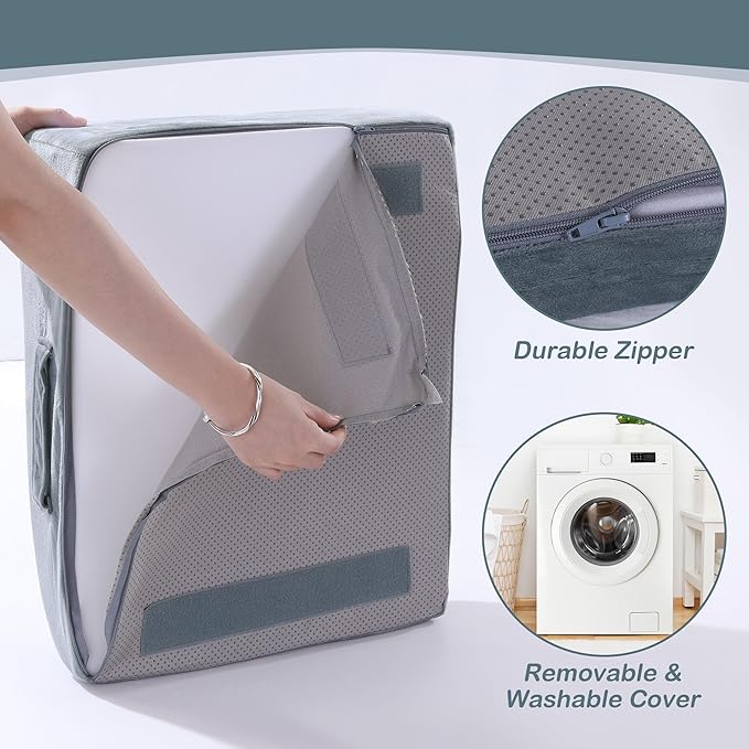 - 【ADJUSTABLE HEIGHT TO FIT YOUR NEEDS】- Specifically designed to provide your legs with superior support and comfort. You can add or remove the piece to adjust the height of the pillow to fit your size, shape or sleeping position. The wedge leg pillow provides soft support for your lower body, relieving pressure in the hips, legs and lower back.