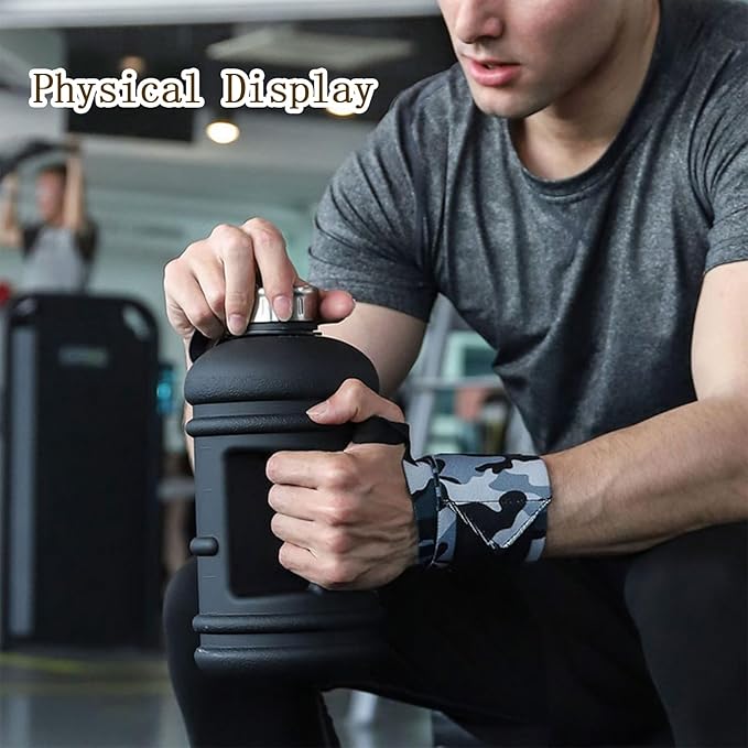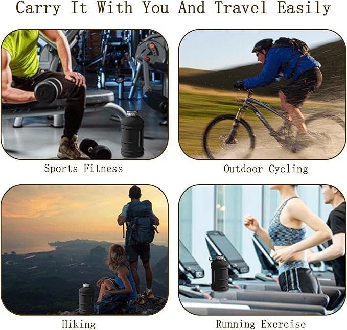 - FASHIONABLE AND PRACTICAL: The sports water bottle is designed with anti-slip handle, therefore stable handle bringing advantages. With Wide Mouth, this large water jug is super easy to pour, refill, clean or add ice, infusion, and fruit. The stainless steel wrapped cap works as powerful protection for the top.