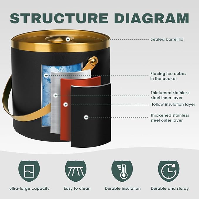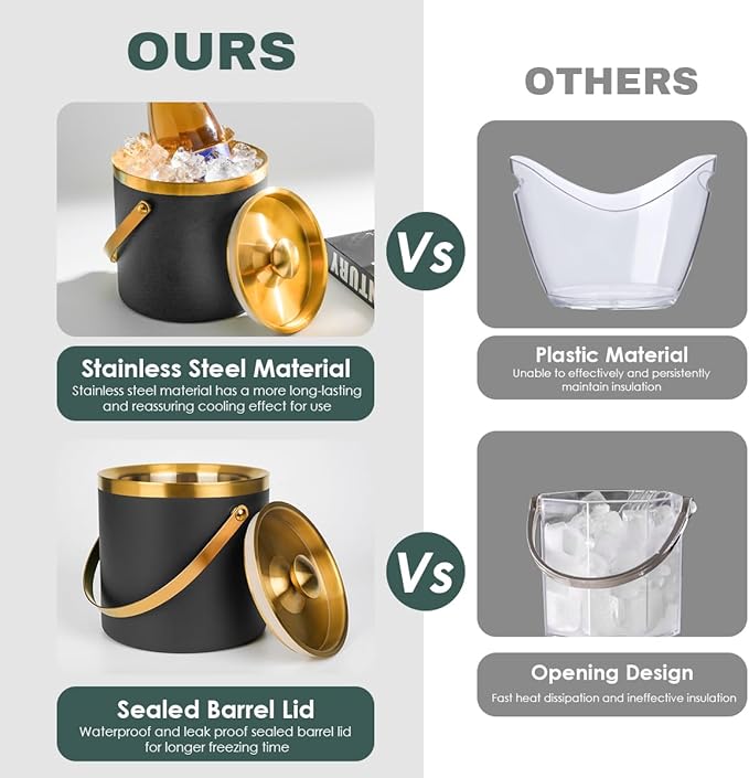 - 1. Keep your drinks cold for hours with this 3 Liter Double-Wall Insulated Ice Bucket for Cocktail Bar, perfect for parties and gatherings.