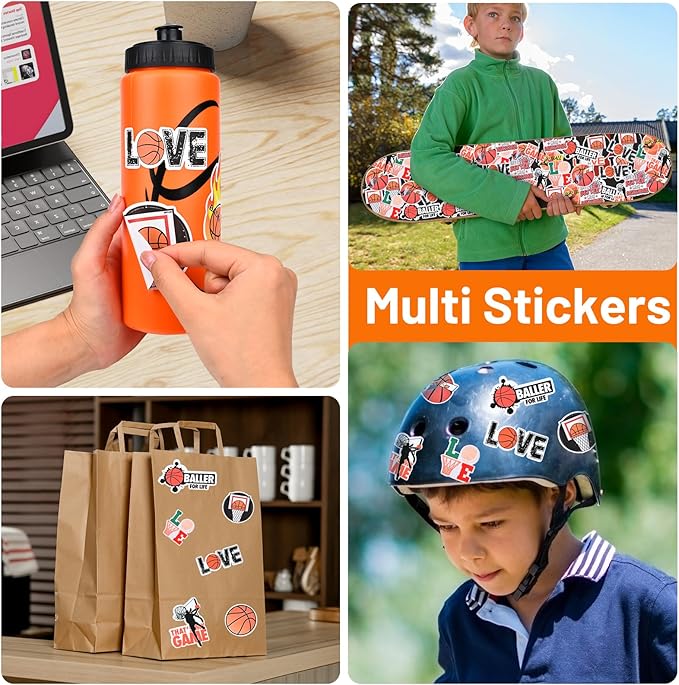 - 【Creativity】The basketball-themed stickers are vivid and fun, allowing kids to get creative and stick them on water bottles, skateboards, notebooks, and more