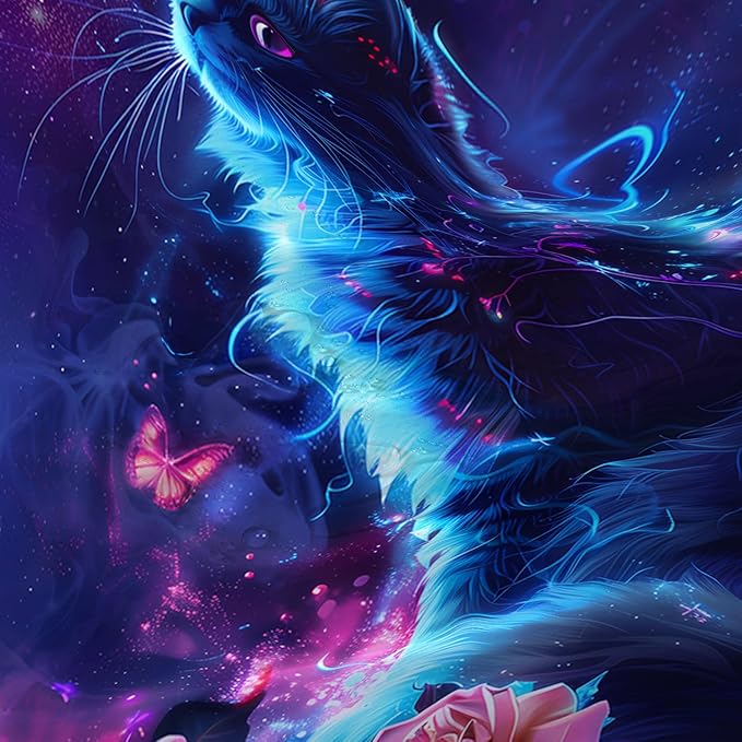 AILONEN 3D Rose Cat Shower Curtain Set, Beautiful Kitten with Butterfly Shower Curtain Liner for Kids Boys Girls,Boho Galaxy Shower Curtain for Bathroom,72" W*72" H