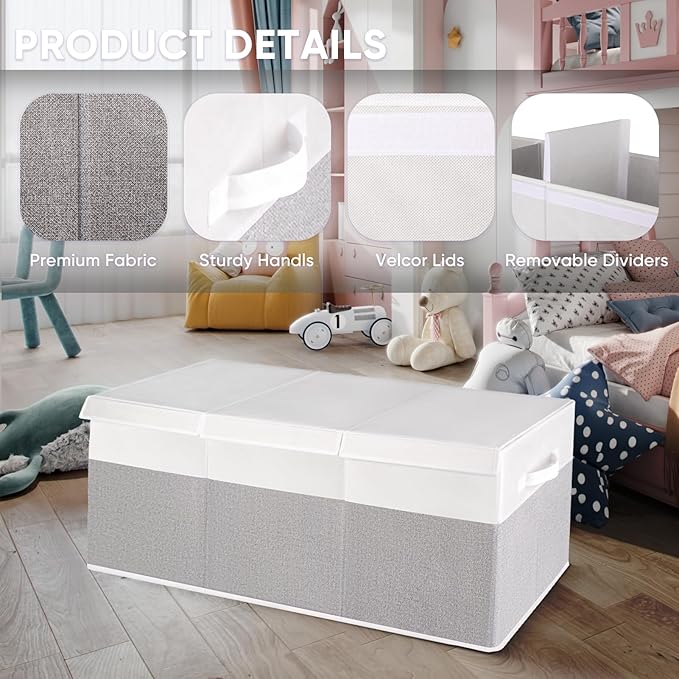 - 【Removable Divider】: This toy storage box is equipped with two removable dividers. When the dividers are not used, it becomes a large storage space. However, when the dividers are in place, it will be divided into three different compartments, allowing you to store different types of items.
