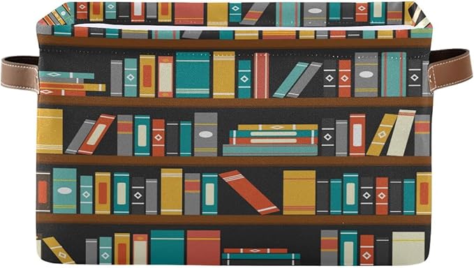 Colorful Bookshelf Book Storage Basket Bin for Shelves Closet Foldable Fabric Storage Box Cube with Handles Kids Gifts Toys Clothes Shelf Basket Organizer for Bedroom Nursery Home Decorative