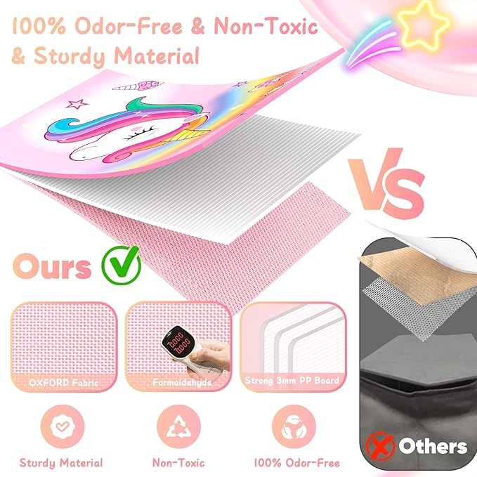- Sturdy Construction Toy Storage Organizer: Sturdy oxford fabric on the outside and environmentally friendly, odorless non-woven fabric on the inside make our large storage bins. The bottom, lining and lid are reinforced with 3mm thick PP board, which can withstand a weight of 40-50kg, provide unparalleled strength and stability