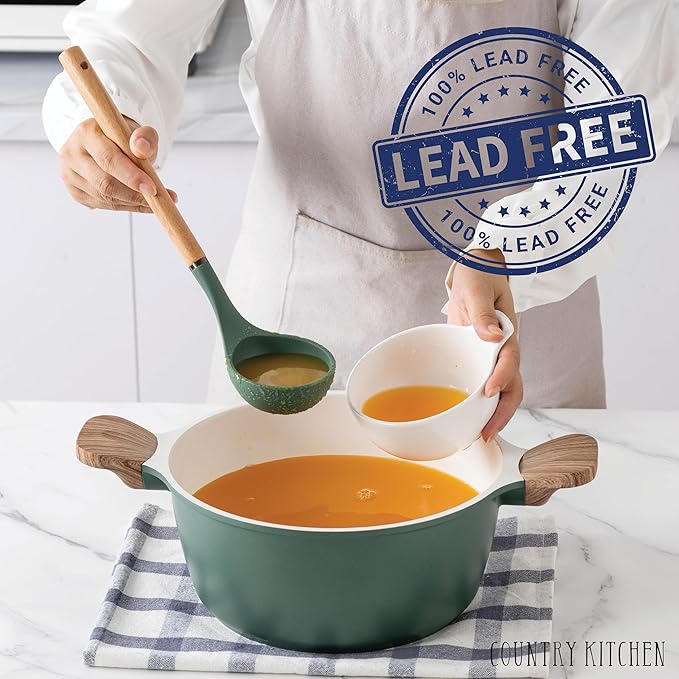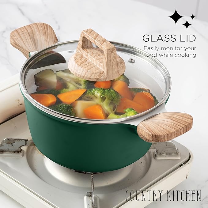 Country Kitchen Pots and Pans Set Nonstick, Cast Aluminum Kitchen Cookware Set with Utensils, 14 Pcs Non Stick Cooking Set w/Frying Pans & Saucepans