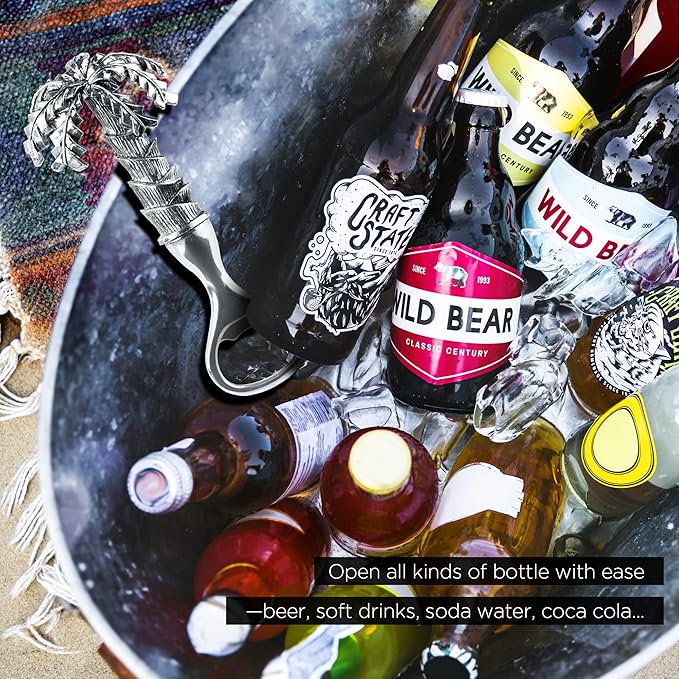 - The 5" wine stopper and bottle opener set features characterized top - finely cast 3D Elephant and Palm - Trees culpture which texture is clearly visible. Bar themed home decor has become so widespread. Our wine stopper and bottle openers incorporate art into daily life, enhancing the aesthetic pleasure of your bar.