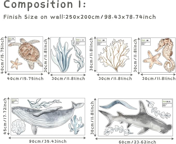 Removable Ocean Wall Stickers, Ocean Themed, Bathroom, Baby Room Sticker, Sea Animals, Removable Wall Stickers, for Baby Bedroom, Bathroom Decor
