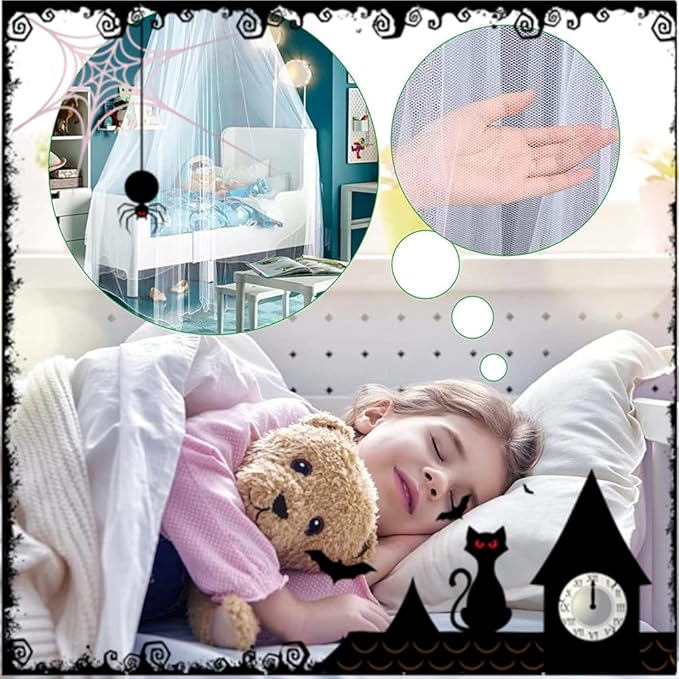 - ❖ SPIDER BED CANOPY - Hanging the bed canopy above your room or bed, it will be a great gift for Halloween decor. (Single Door and hanging design, foldable steel ring bracket, easy to use)