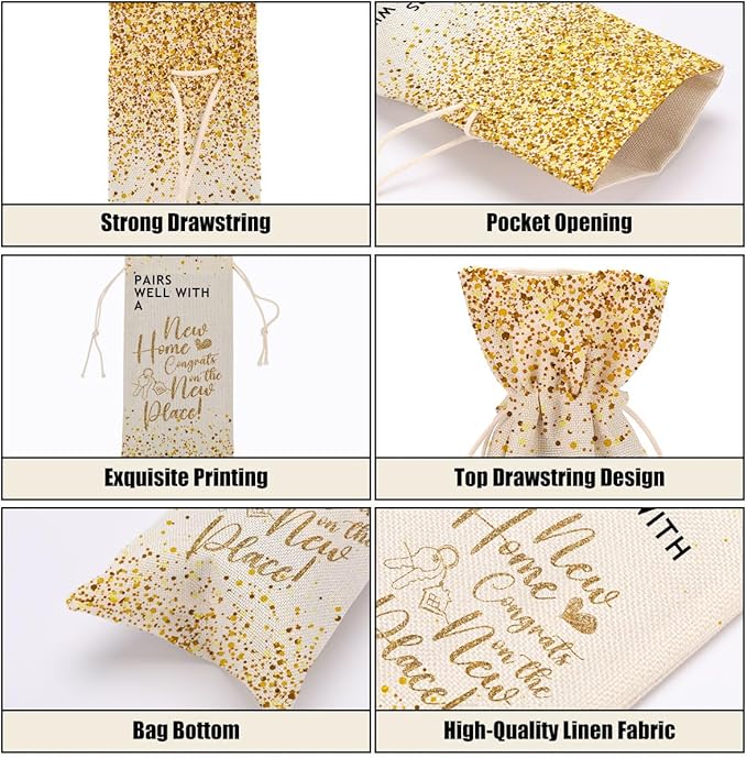 • Premium Material: Our wine gift bag is made of high-quality linen fabric, which is durable and reusable, reducing the impact on the environment. Good quality, strong support and safe enough to protect and hold wine or champagne. There is a drawstring design at the opening for easy opening.