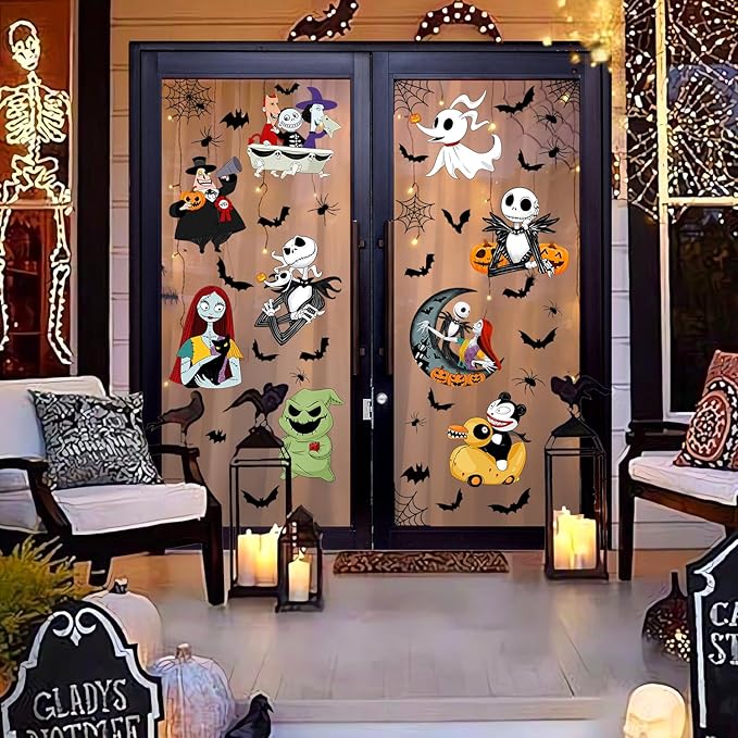 - Halloween Theme Designs: These cartoon window clings are full of Halloween elements, such as adorable cartoon character patterns, bats, spider, spiderweb and so on, with their nightmare-inspired designs, these window decorations are perfect for getting into the spirit of the season.
