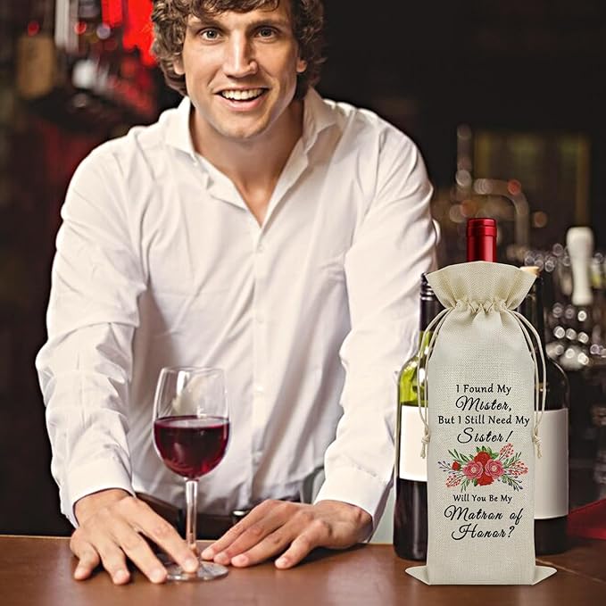 Matron of Honor Proposal Gifts Wine Bag Gifts for Bridal Party from Bride on Wedding Day Thank You Gifts Wine Bottle Decoration Bag Bridal Shower Gifts Ideas Wine Accessories Gifts for Wine Lovers