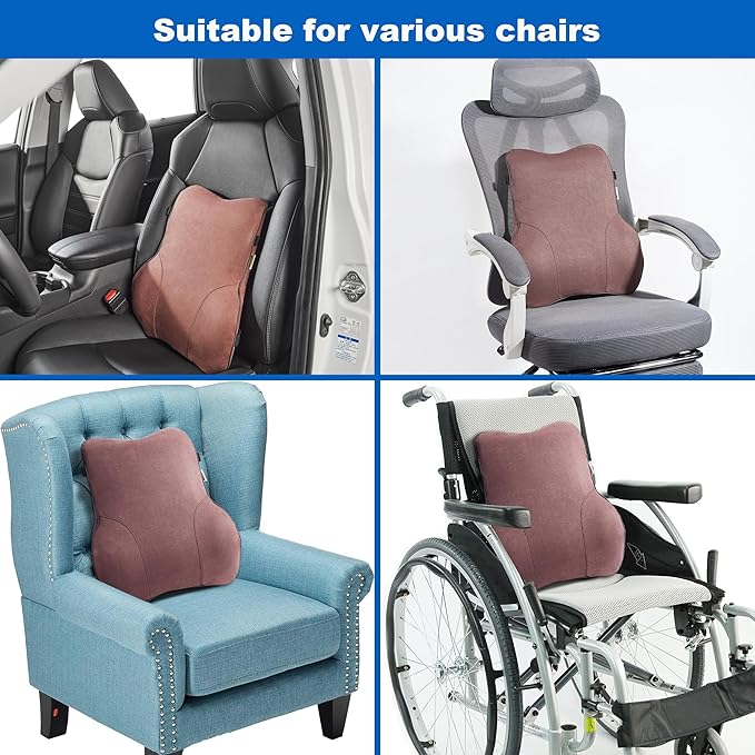 - LUMBAR CHAIR SUPPORT PROVIDES CONSISTENT COMFORT: The lumbar support pillow core is made of 100% high-quality space memory foam, which is soft and comfortable(The lumbar pillow core has an independent liner cover). the lumbar support won’t flatten, providing the same feel use after long-term use thanks to its slow rebounding, heat responsive memory foam.