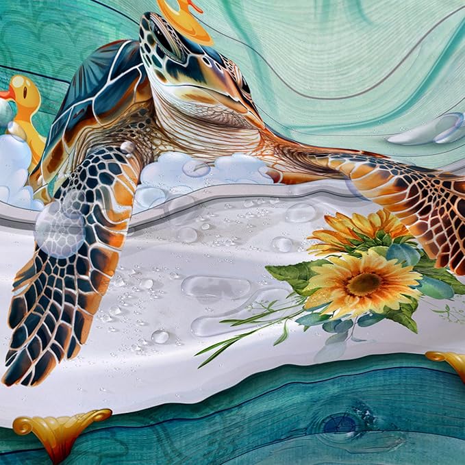 AILONEN Cute Sea Turtle Shower Curtain Set for Bathroom,Cartoon Funny Bathtub Turtle Bath Curtain,Sunflower Theme Waterproof Fabric Shower Curtain with Hooks,36" W*72" H