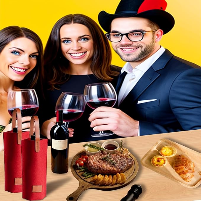 - EXCELLENT APPEARANCE: Simple and generous design with felt and leather material, flat and sturdy bottom, so you can carry your wine safely without worrying about dropping it; your exquisite gift will stand out at birthday parties or weddings