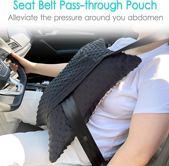 - 【Pain-Free Car Rides】The special star shape to keep it in your lap is quite useful, and definitely better than trying to stuff regular pillows between you and the seatbelt. It helps to alleviate the pressure around you chest after having surgery, gives a good amount of cushioning between you and the seat belt. It is marketed to be worn in the car over your seatbelt but actually can be worn anywhere. You can also use it at home as well while sitting up or laying down.