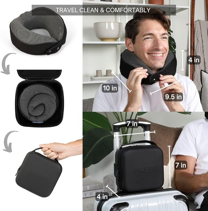 - **LIGHTWEIGHT AND SPACE SAVING** - The Airest memory foam travel pillow is lightweight and fits into our carrying case, keeping it clean while not being used. Material is machine washable.