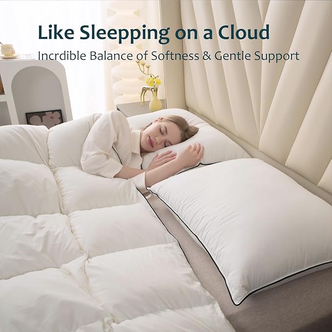 - HARD-WEARING DESIGN and BEST GIFT- Our down pillows are Double-stitched and expertly tailored, offers signature black piping ensuring both a luxurious appearance and preventing any down from escaping. A great gift choice for family and friends