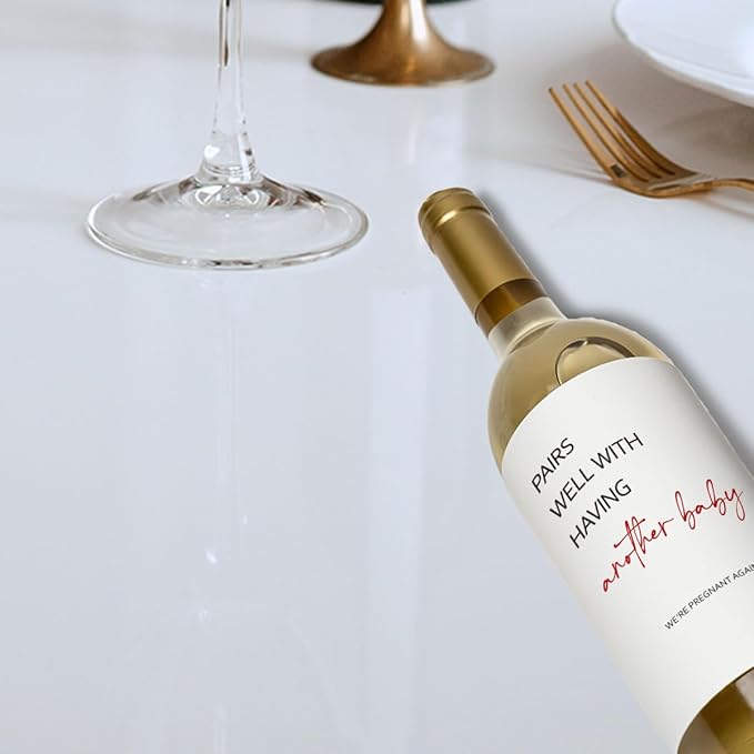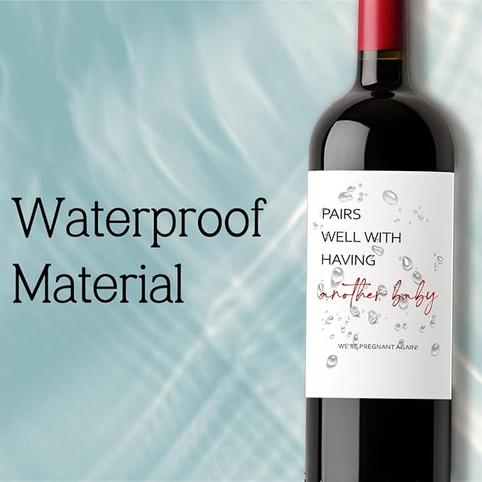 - 【Second Baby Announcement Wine Labels】Make pregnancy announcement more fun! Our second baby wine label says "Pairs Well With Having Another Baby", these unique wine labels are the perfect way to celebrate a new life is coming with funny sayings that everyone will love. Make memories last with these pregnancy announcement wine bottle stickers.
