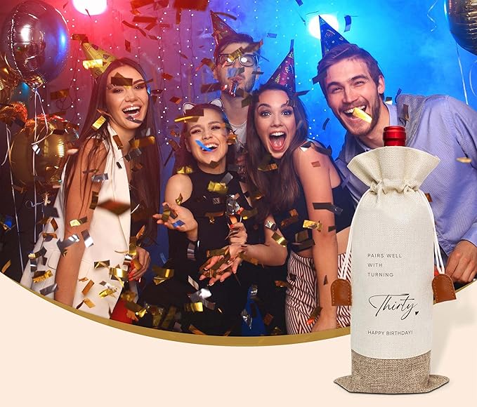 30th Birthday Wine Bag, Cotton Linen Wine Gift Bag With Drawstring, Wine Champagne Bottle Gift Bag, Thirty Years Old Birthday Gifts Wine Bag for Woman Man, 30th Birthday Party Favors-32