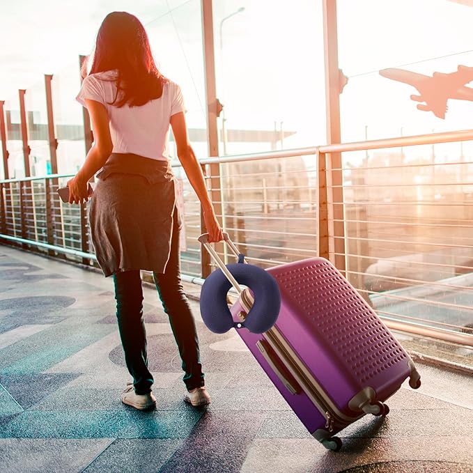 - The built-in elastic strap makes it easy to attach the pillow to a carry-on luggage without taking up extra space. Great for travel or use for neck support anywhere you like, you can make the most of your luggage space, Stuff it with clothes or essentials, saving room for other travel must-haves.