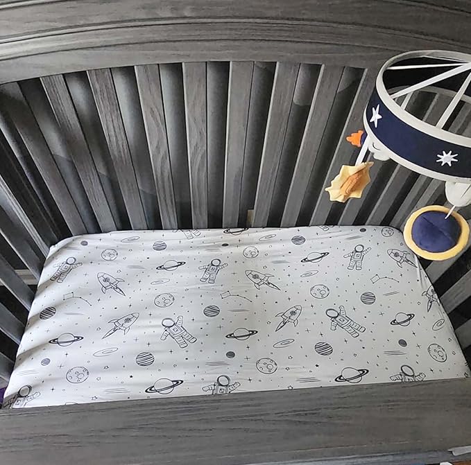 TotAha Premium Soft Space Bassinet Sheet for Boy Girl, Super Stretchy Jersey Knit Bassinet Fitted Sheet, Compatible with Halo, Maxi COSI, Mika Micky, SNOO, Baby Delight Mattress, 2 Pack