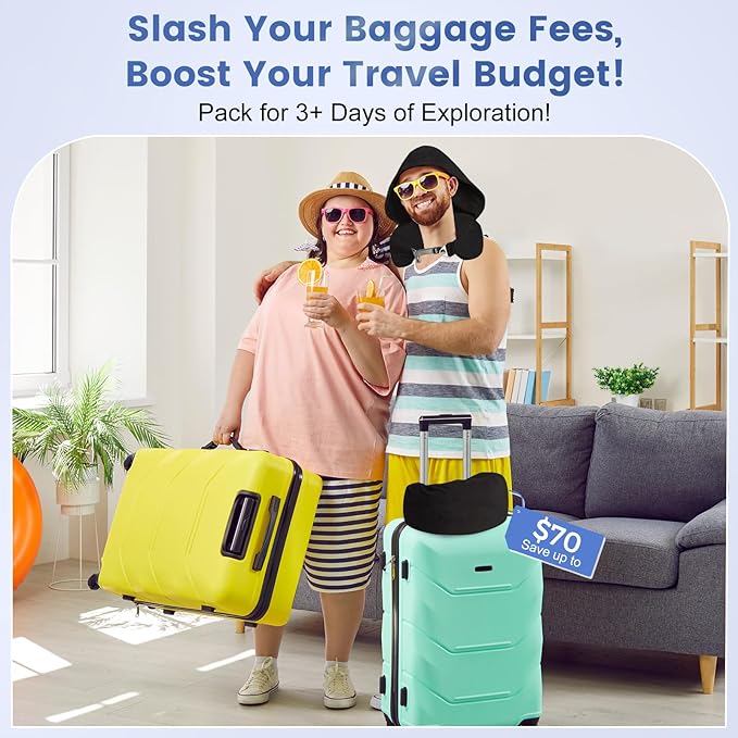 - Versatile Comfort with Practical Hood: This stuffable neck pillow for travel isn't just a pillow; it's a smart packing solution. Fill it with clothes for up to 3 days of travel. The integrated hood adds privacy and warmth, ideal for long flights or layovers