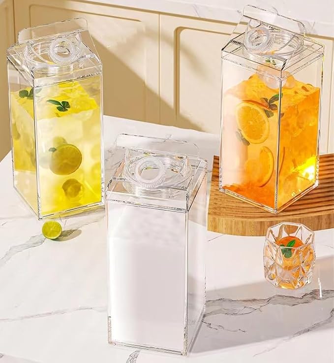 - 【Package Included】You will get 2 pieces of clear milk carton water bottles, coming in transparent style, well matching with different colors of drinks, abundant quantity to use, replace and share with families or friends.