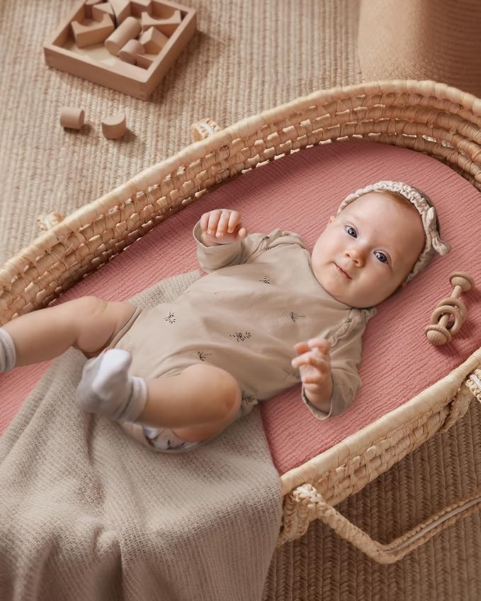 - Easy To Care: Made from premium double-layer fabric, our muslin bassinet sheets fitted are durable to use, staying soft and no shrinkage, fading, or pilling after machine washing