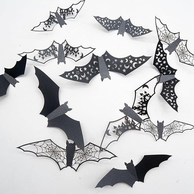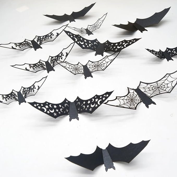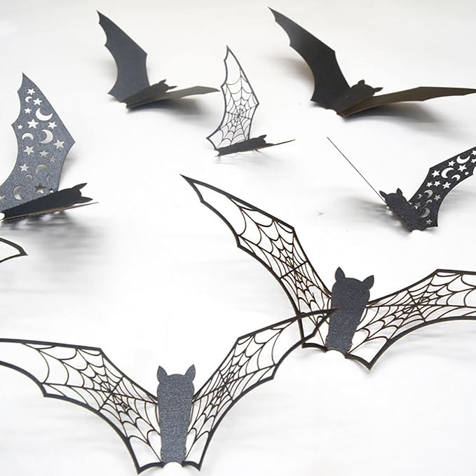 - Halloween Decor: The package includes 24Pcs Large bats wall sticker, each size is 7 x 2 inch/ 17.8 x 5.3 cm, more than 4 patterns of different sizes, which meet your Halloween decoration needs.